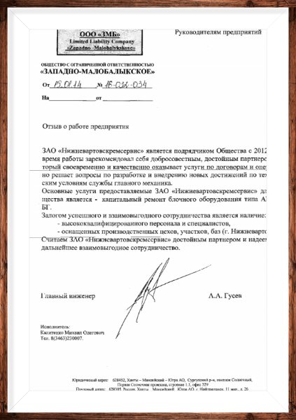 В 2013 году специалистами предприятия АО «Нижневартовскремсервис» совместно
