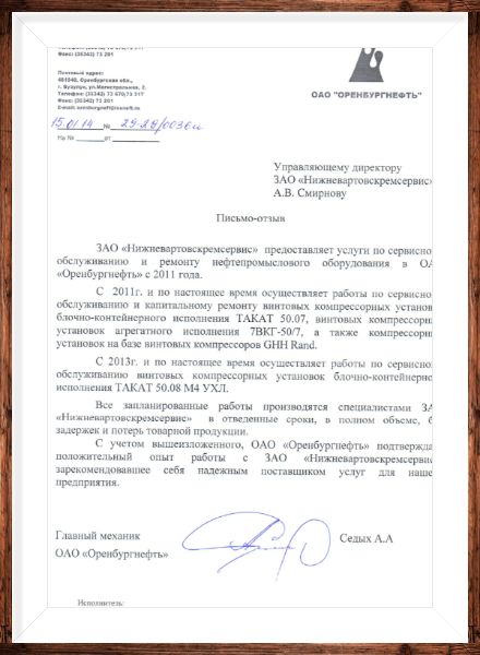 АО «Нижневартовскремсервис» позволил решить поставленные задачи. Смонтированы, запущены в работу и поставлены на комплексное сервисное тех. обслуживание компрессорные установки марки «ТАКАТ» новой модификации. За истекший период внедрено 14 винтовых компрессорных установок «ТАКАТ».