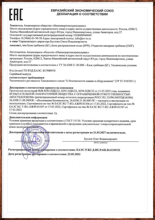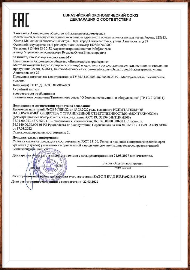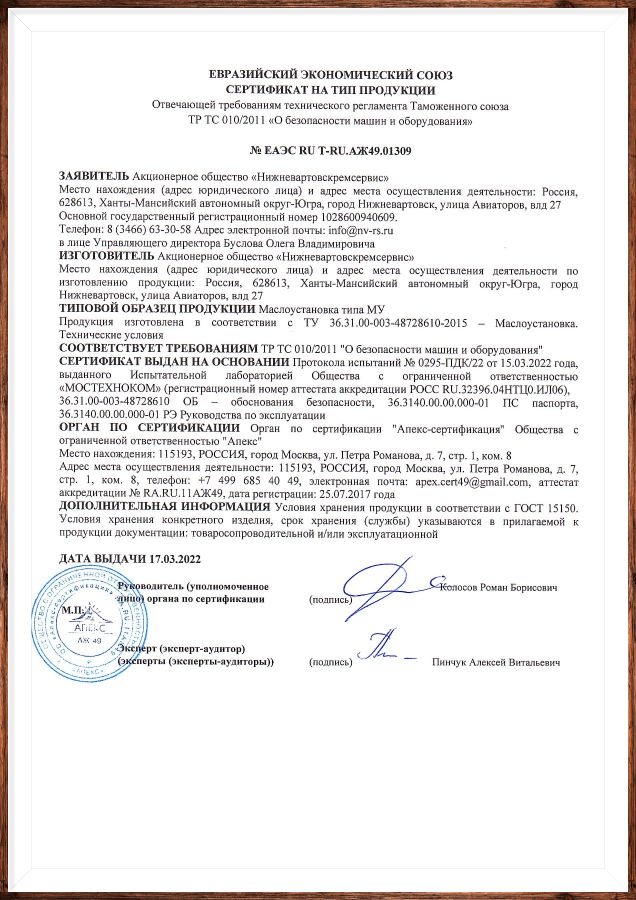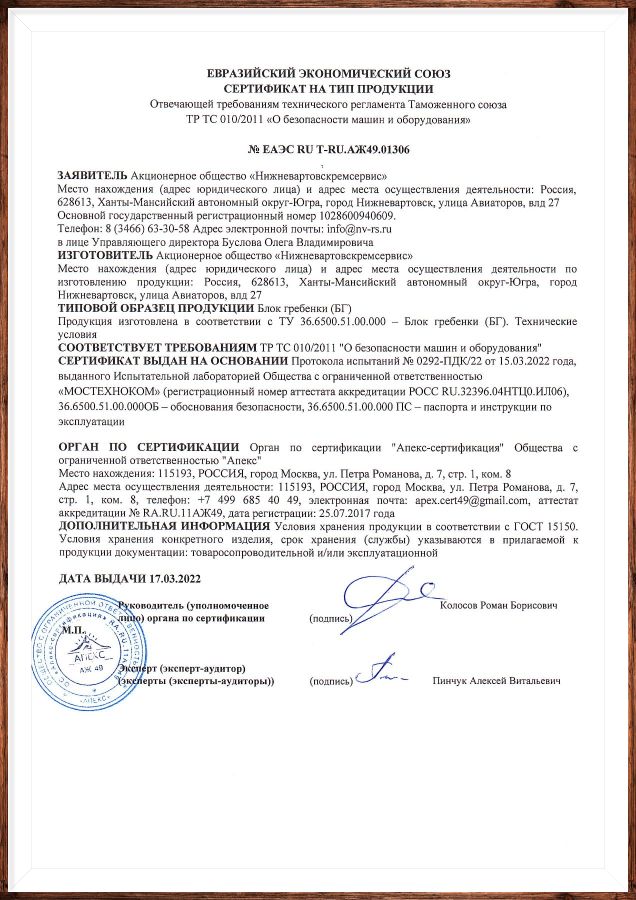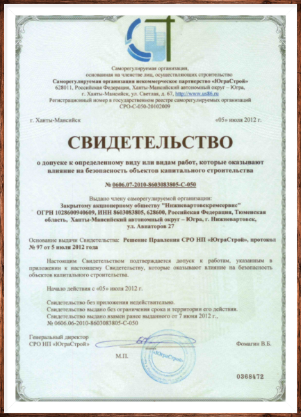 АО «Нижневартовскремсервис» имеет всю необходимую разрешительную документацию на проектирование, изготовление и реализацию выпускаемой продукции и оказываемых услуг.