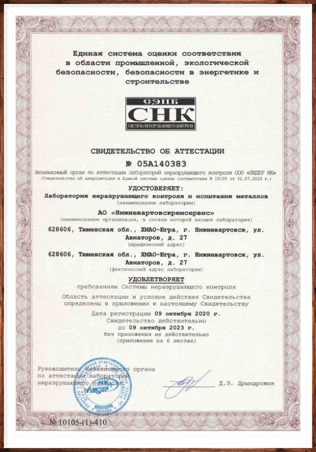 Свою деятельность АО «Нижневартовскремсервис» ведет в соответствии со стандартами системы менеджмента качества. Имеются все необходимые сертификаты соответствия и стандартизирующие документы.